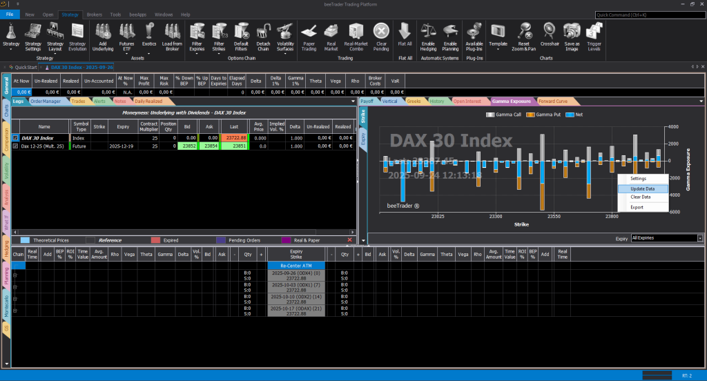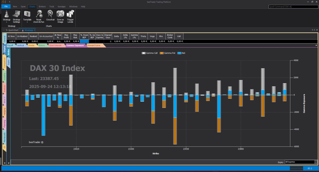 La funzionalità Gamma Exposure in beeTrader è disponibile all’interno delle Options Strategies.